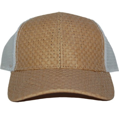 5 Panel Straw Tweed Mesh Baseball Cap- Khaki/ White Review