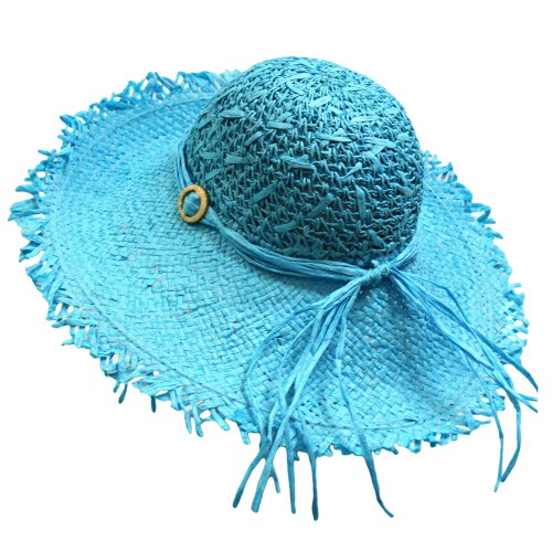 Sky Blue Wide Brim Straw Fringe Floppy Hat Review