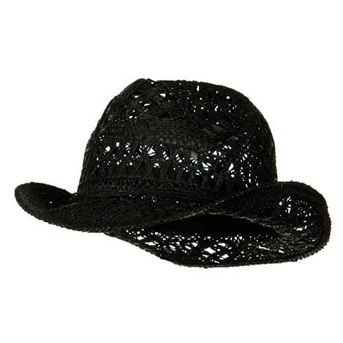 Our fabulous Black Ladies Toyo Fedora Hat is perfect summer cowboy style fedora hat for ladies. This summer fedora ensures cool condition for your head all the time as hat features many ventilation spaces for your head to circulate. You can somewhat express summer Western vintage look in this paper straw fedora. Crown of hat is accented with matching colored thin ribbon tie string, offering more of feminine look. This toyo fedora hat will be great choice for your special summer outings or summer trips and you ladies will definitely have stylish look this summer. Check out our other amazing colors for this hat~! Made of 100% paper straw.One size fits most with terry elastic band inside, fitting up to 7 3/8.Crown measures 4 inches deep, ribbon tie around the crown.Brim measures 2 1/4 inches wide, side upturned.Thick, stiff and cool material.Hand wash only.Available in white, black, coffee and pink.Imported