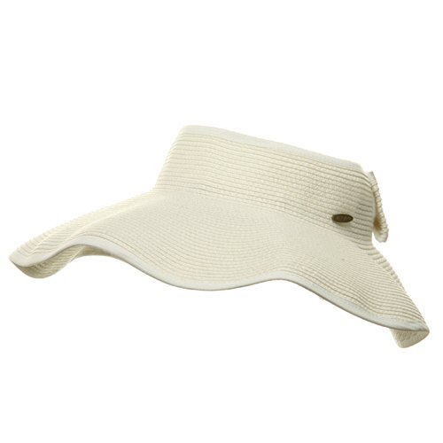 On your next beach trip don't forget to bring our White ML Paper Braid 5 Inch Brim Visor. Made from 100% paper straw, this visor hat embodies all the comfort and style of a traditional visor with a flare of far away fun. The color trimmed visor features a 2 1/2 inches high crown and 5 inches wide brim, this straw hat offers you maximum protection from hot sun in summer. Fitted in the back with a ribbon designed adjustable strap, makes this easy to adjust and fit to your preferred activity or style. Lightweight and simply rolls up for easy transport in your suitcase or swim bag. So whether you are on vacation or not, at least your head will look like it is while wearing this visor. This amazing visor hat is available in 6 different colors. Made of 100% paper straw. ONE SIZE fits most with adjustable strap closure, fitting up to 7-1/2. Crown measures 2 1/2 inches high,brim measures 5 inches wide. Foldable(roll). Thick, soft and cool material. Hand wash only. Available in natural, brown, black/band, white, black and brown/natural. Imported.