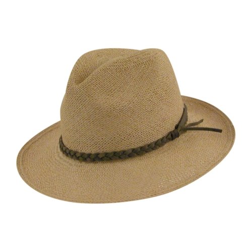 Twisted stands of Panama straw are blocked into Pantropic's classic fedora style, the Makawao Braided Sun Hat, for your overall enjoyment this summer. A fedora that is especially popular with the "outdoor crowd" due in part to its light weight and breathability, the Makawao sports an attractive braided rope hatband for a nice visual center. Pack the Island Fedora with you this vacation.