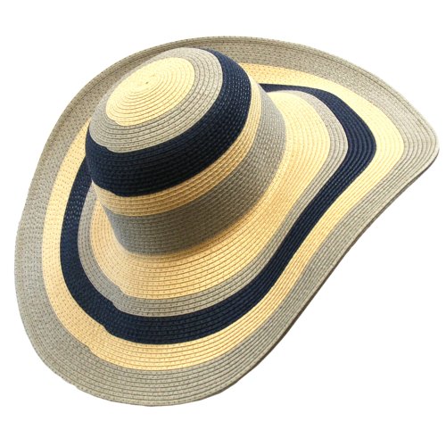 Navy Gray & Beige Wide Brim Circular Pattern Floppy Hat Review